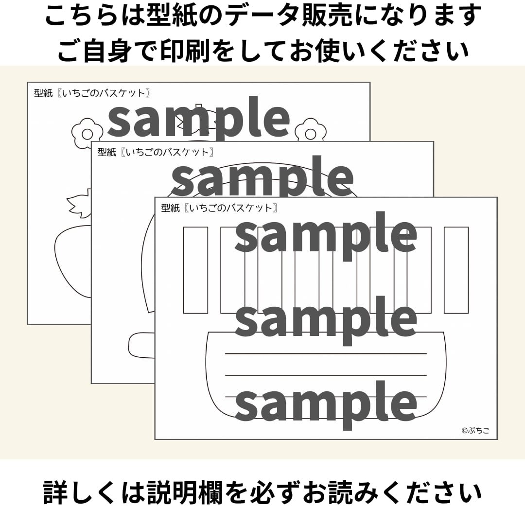 ▶内容:バスケットの型紙×2枚、いちごの型紙×1枚