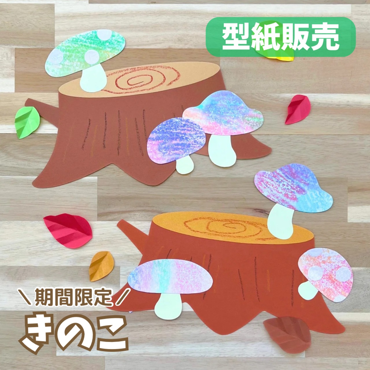 ▶内容:きのこ、切り株、落ち葉の型紙×2