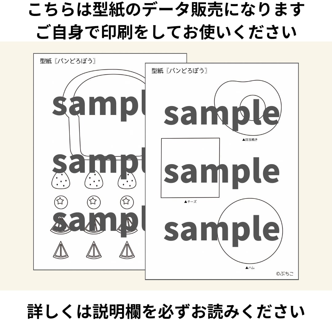 ▶内容:パン、いちご、ブルーベリー、マーマレード、目玉焼き、ハム、チーズの型紙×2