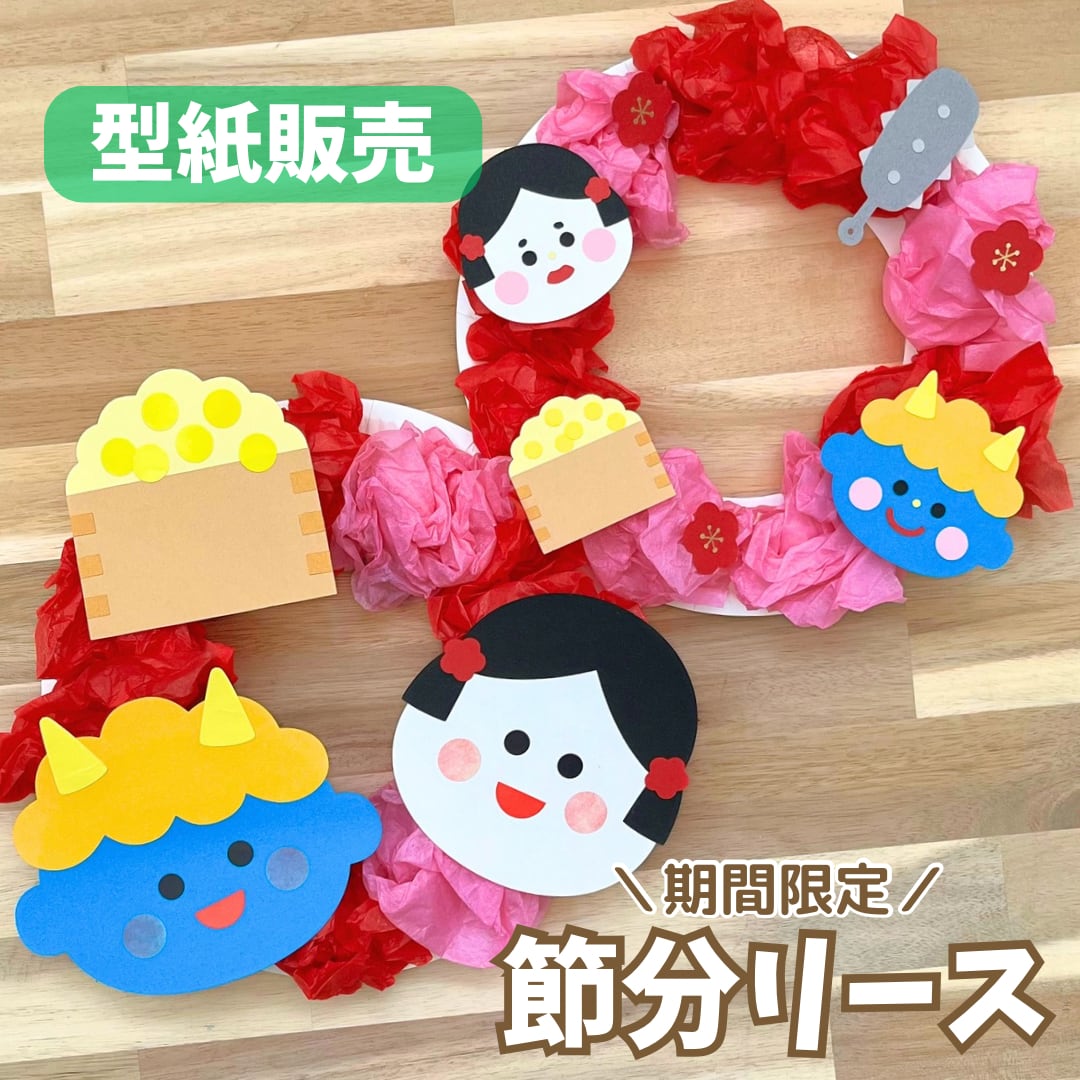 ▶内容:鬼の顔、福の神の顔、枡、金棒の型紙×2