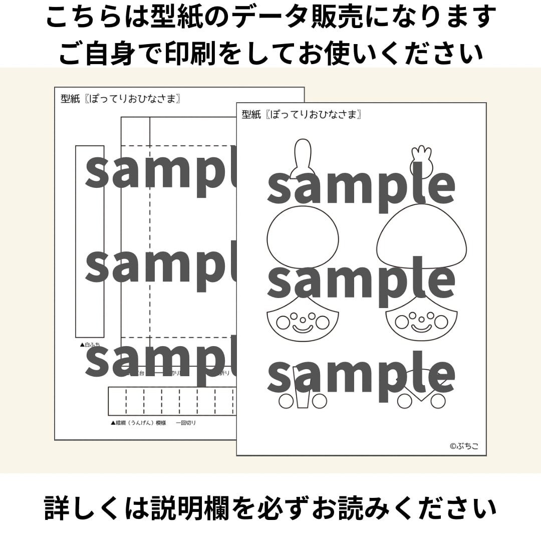 ▶内容:お内裏様、お雛様、親王台の型紙×2